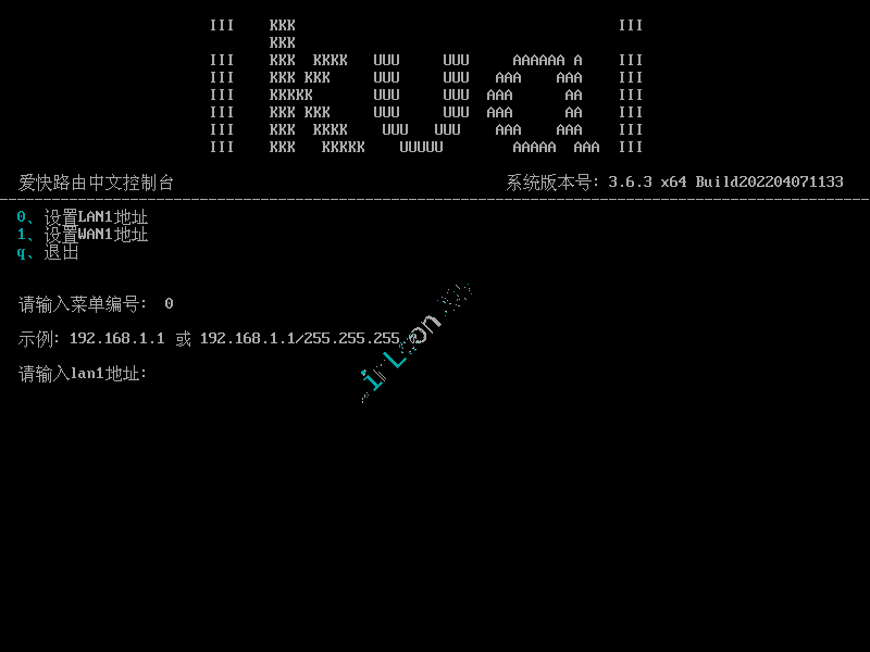 输入 0 设置 LAN1 地址