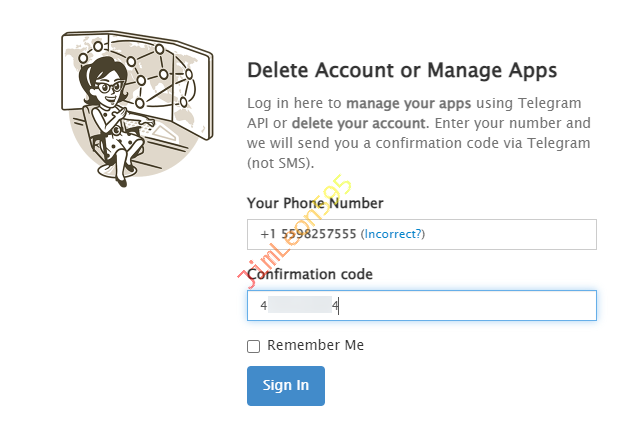 Confirmation Code一栏填写Telegram账号收到的验证码