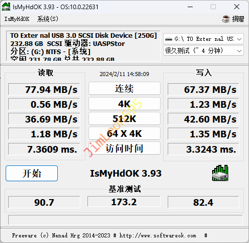 外观 CrystalDiskInfo DiskGenius TxBENCH CrystalDiskMark IsMyHdOK ATTO Disk Benchmark WTGBench AS SSD Benchmark